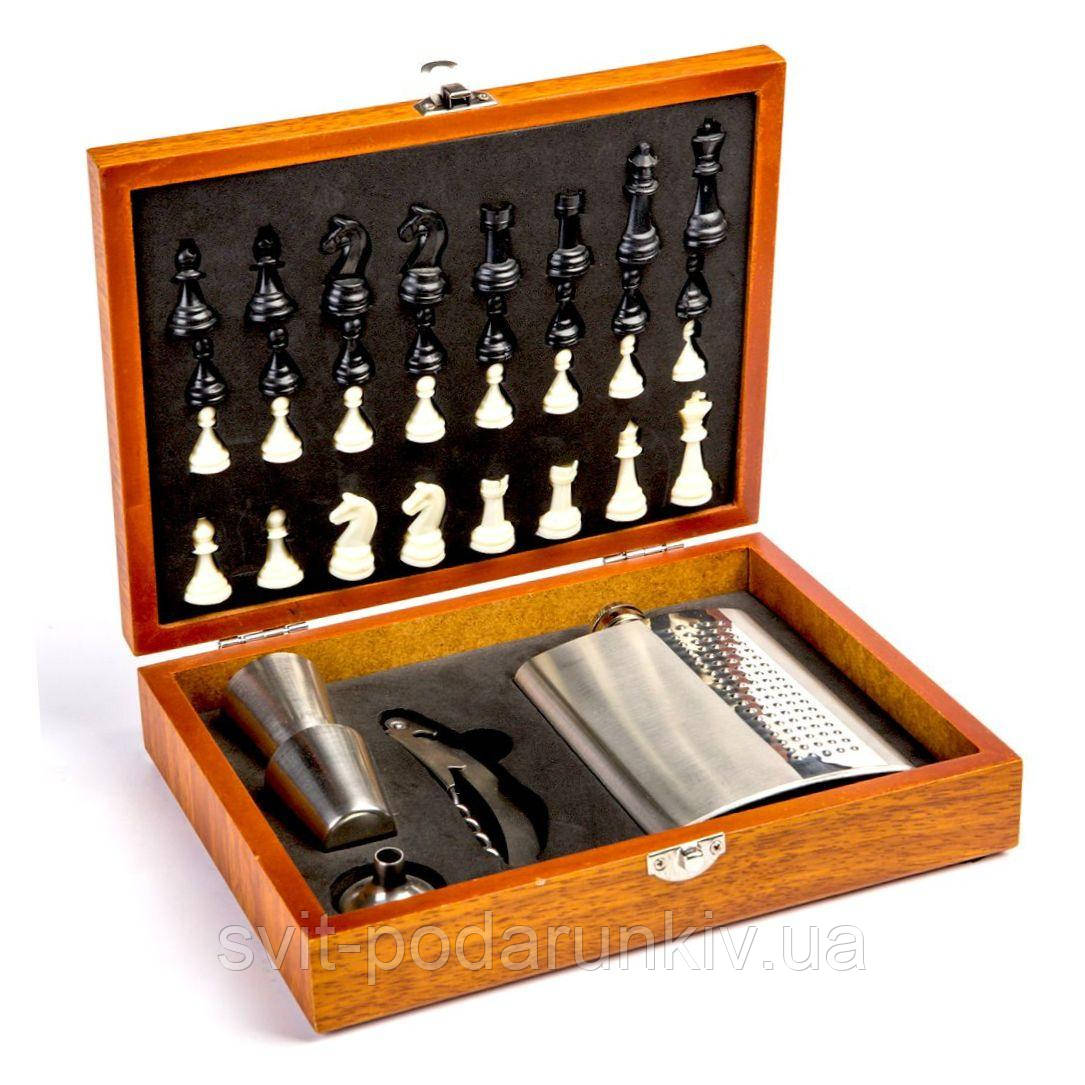 Набір шахів із дерева та фляга для алкоголю TZ-15